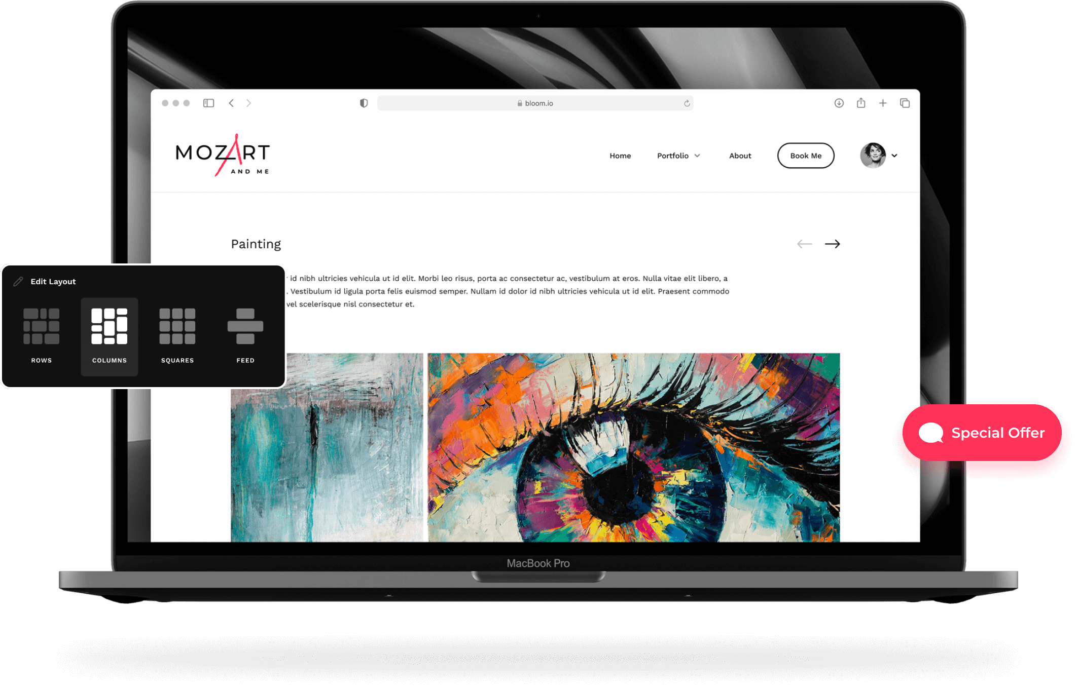 Bloom templates follow minimalist themes while focusing on what matters. Enjoy an online presence that makes your portfolio stand out. Most importantly, the templates feature calls to action giving your clients an easy way to get started.